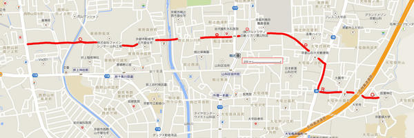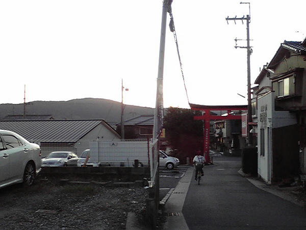 奈良街道に出て、少し南下すると参道入り口に来ます。奈良街道は筋金入りの古い街道で、りっぱな蔵のあるような日本家屋(古い)がそこここにあるのですが、建て替えをしているところも多く見ました。 で、この鳥居の先は参道らしき風情があるかといえば全然で、民家が続き、車通りも多い生活道路になっています。
