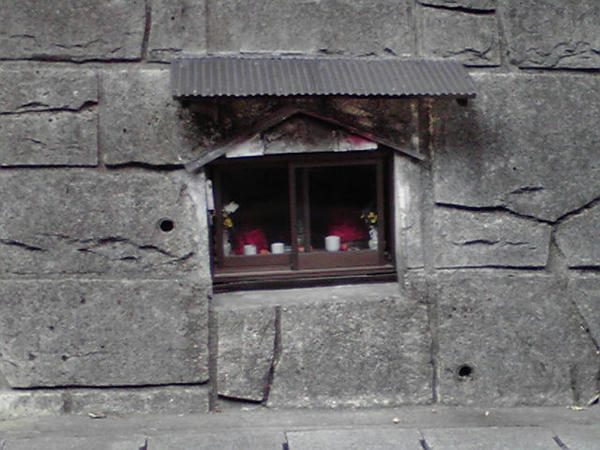 山肌の舗装にうめこまれたお地蔵さんがいらっしゃいました。ここは舗装されてからそんなに経っていないようですね。下調べしたページではこんな状態ではないお地蔵さまが。