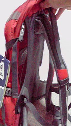 ウォーキング時、荷物の多いときはリュックを背負うのですが、背中の汗に困り果てていました。「歩く会」に参加されていた方から、背中があたらない工夫がされているリュックがあるよと聞いて、ぜひとも欲しいと思っていました。中央のネットと、赤のバック部分に間にすきまがあり、背負ったときに空間ができます。すばらしい。