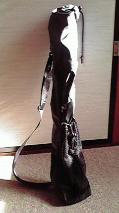 用具一式。キャリーケースは別売りです。握りの下が赤(右手用)のポール根本についている白いものは2本を固定しておけるプラの留め具です。