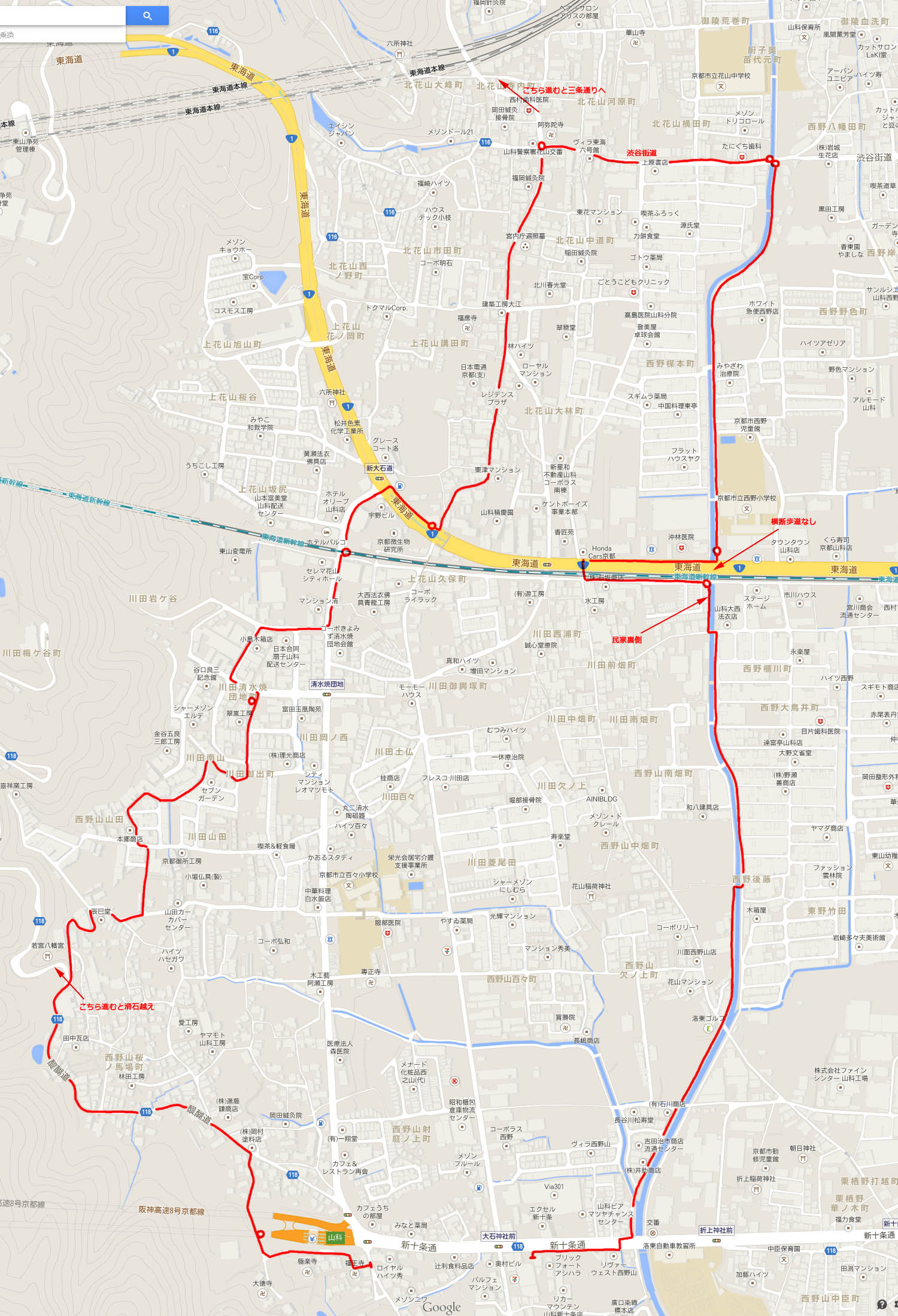 10/5 新十条~山科川~三条通~旧東海道~大石道(1時間半)