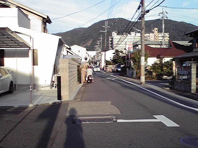 奈良街道に出て、少し南下すると参道入り口に来ます。奈良街道は筋金入りの古い街道で、りっぱな蔵のあるような日本家屋(古い)がそこここにあるのですが、建て替えをしているところも多く見ました。 で、この鳥居の先は参道らしき風情があるかといえば全然で、民家が続き、車通りも多い生活道路になっています。