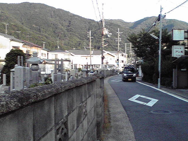 古い道の脇には、狭い道でも店がならび、寺社や参道があり、お墓がある。と、思います。ここもそう。すれ違うのがむずかしい細さでも向かい合って車が通り過ぎます。人通りも多い。朝は快適に歩けましたが、夕方ここをウォーキングするのは避けたほうがよさそう…。